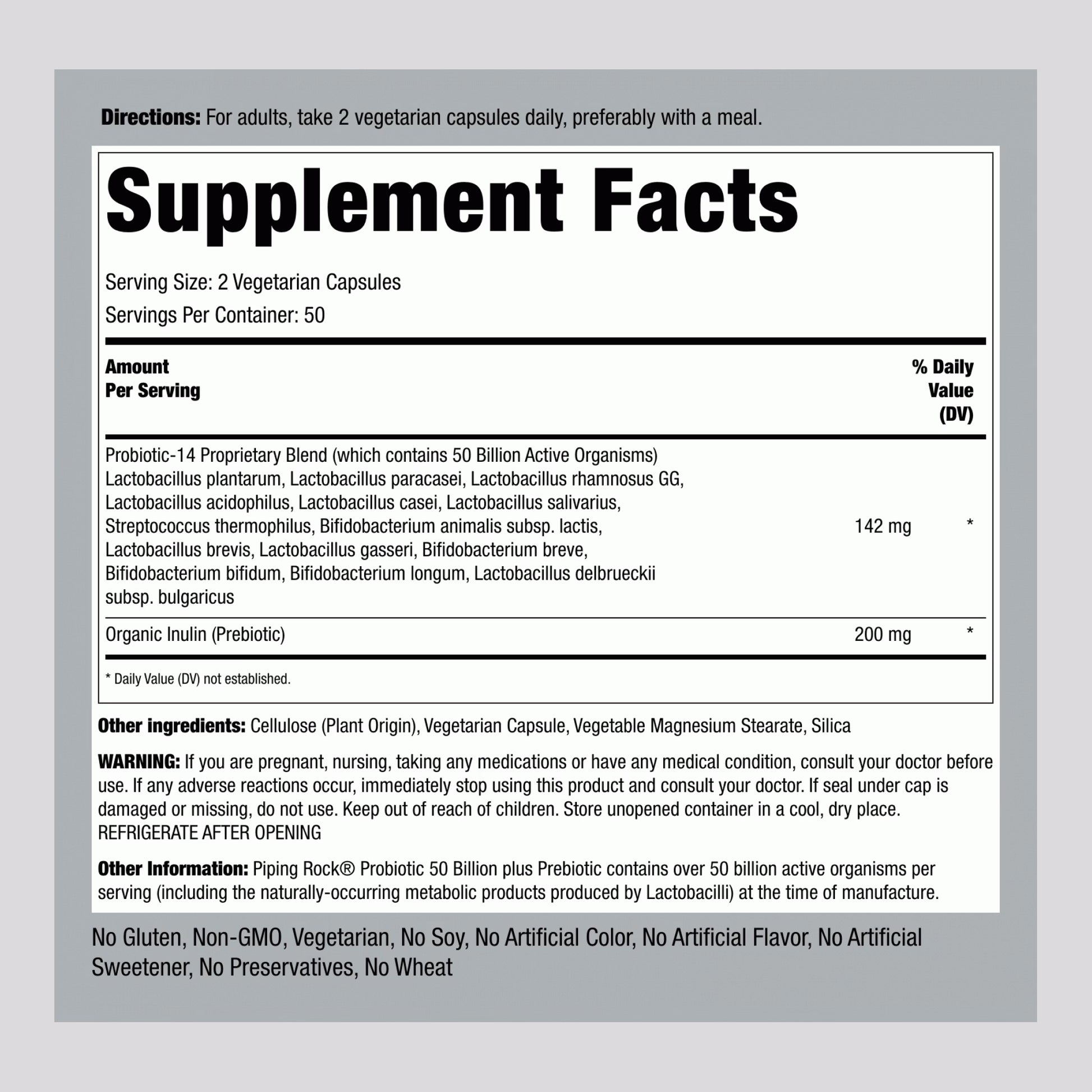 Probiotic 14 Strains 50 Billion Organisms plus Prebiotic, 100 Vegetarian Capsules